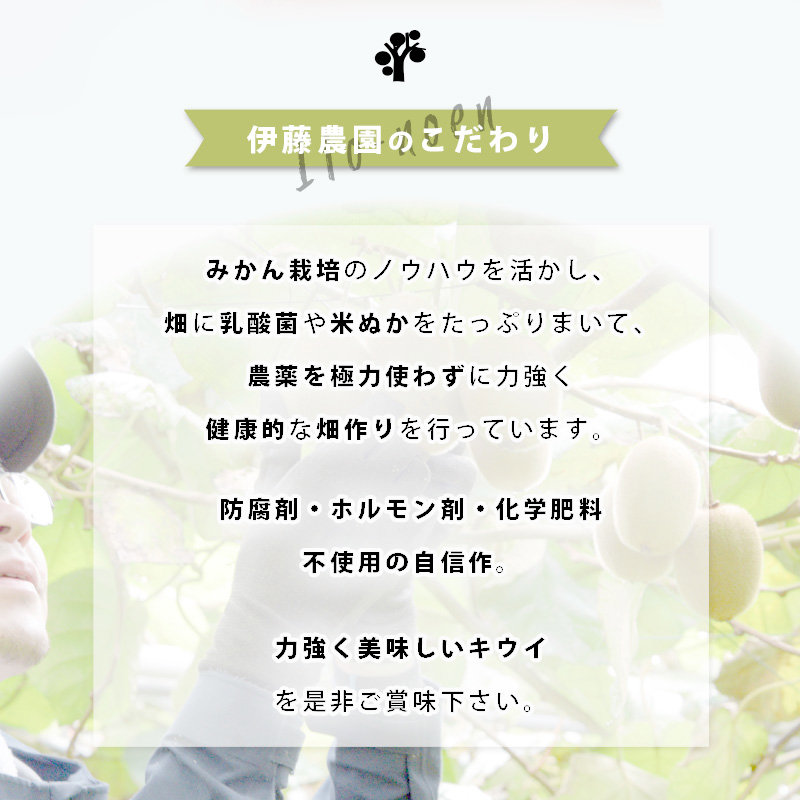 そんなみかん栽培や地域の特性を生かした伊藤農園ならではの美味しいキウイをご賞味ください。