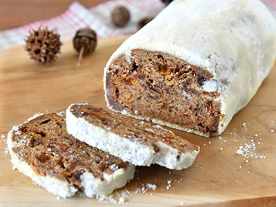 シュトーレンは、ドライフルーツやナッツとバターを生地に練り込み発酵させ焼き上げた伝統的なお菓子です。